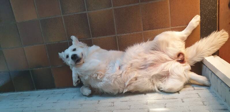 Nu weer afwachten Faye moest toch even op de rug gaan liggen.